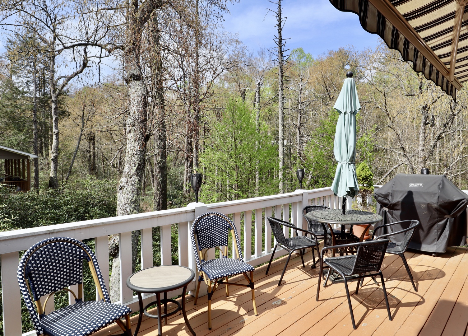 From the upper level deck you have access to the outdoor firepit as well as a view of the natural landscaping. Here you will also find a webber gas grill which will be perfect for grilling out with the entire family! (The firepit may also be acccessed from the front of the house using the pathway.)